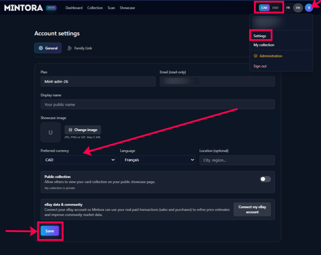 Changing the language on Mintora is super easy! You can do it quickly by clicking FR or EN at the top right, or directly in your user settings. Changer la langue sur Mintora est super facile ! Vous pouvez le faire rapidement en cliquant sur FR ou EN ...