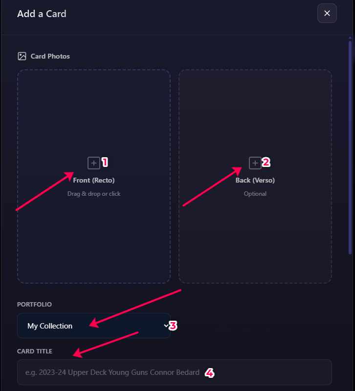 Il est important de savoir que les cartes ajoutées manuellement ne sont pas scannées par Mintora vision, donc cela est une référence personnelle uniquement.