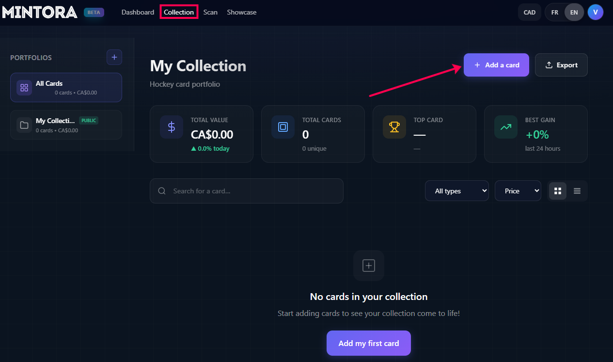 10. Il vous suffit de cliquer sur le bouton « + Ajouter une carte » et votre carte fait maintenant partie de votre collection !