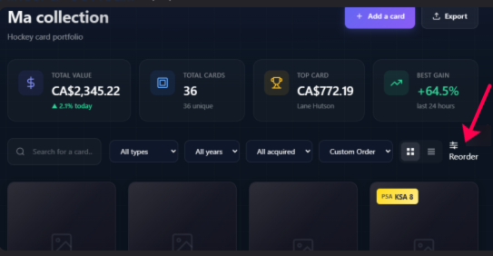 À droite de l’écran, clique sur le bouton “Reorder” (icône avec les lignes).